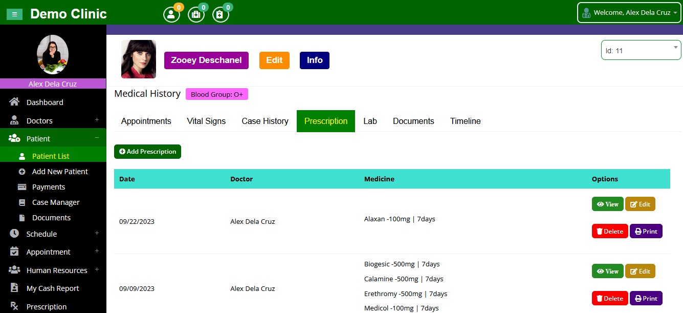 Can manage patient’s case history, documents, payments, appointments, presriptions, medical certificates and lab test results.